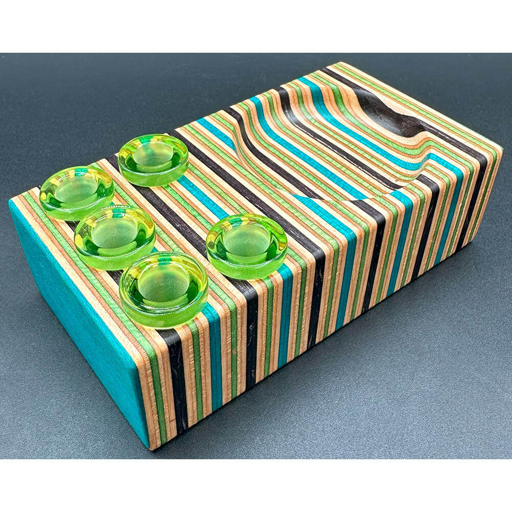 Banger stand made from recycled skateboard decks by Kobo in Finland.