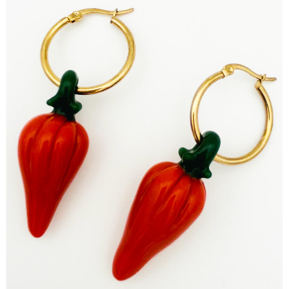 Earrings in the shape of Tomatoes, who doesn’t love these? Made for us by Manu at Glashus Switzerland.