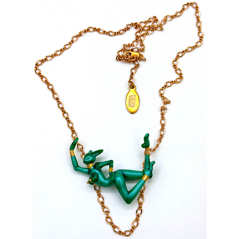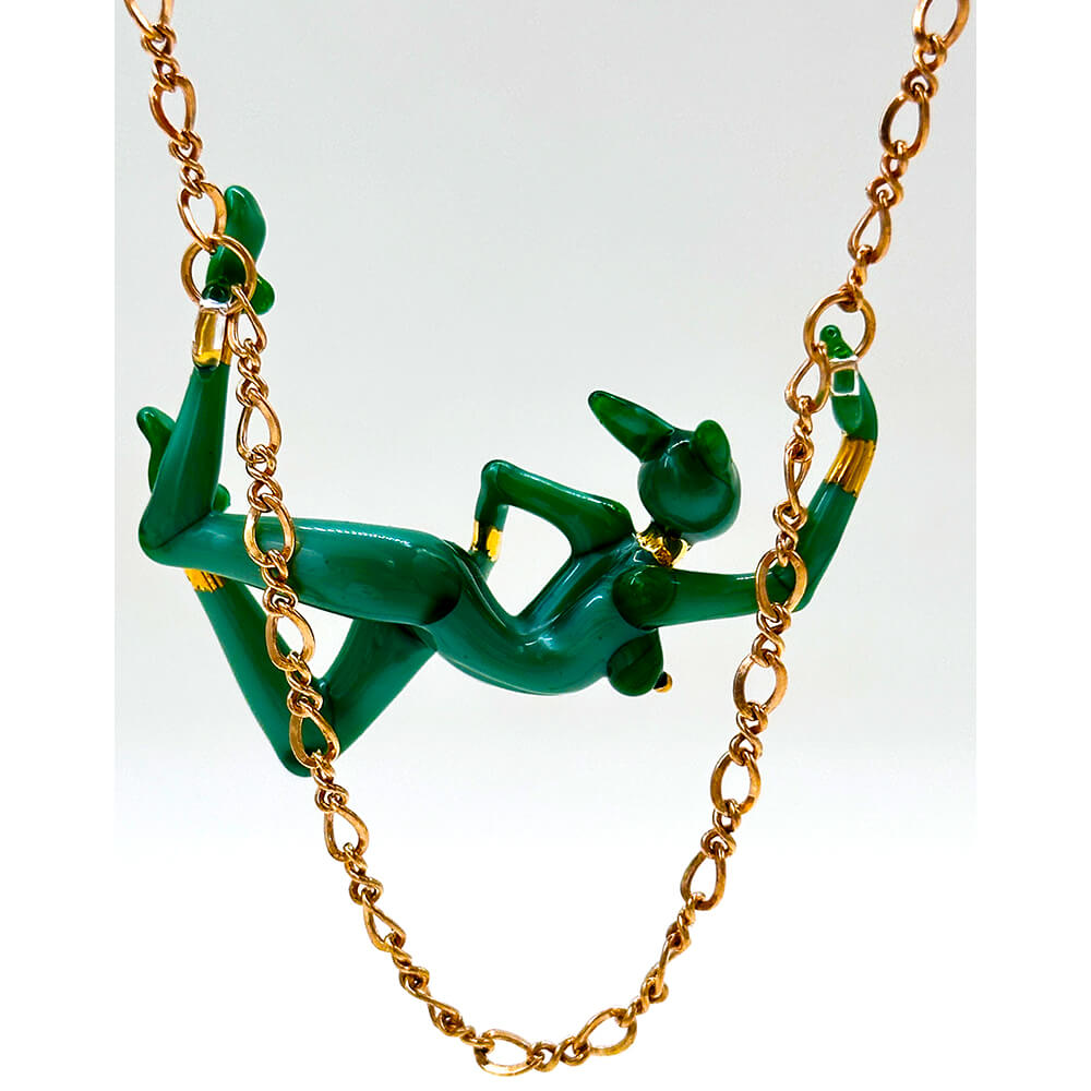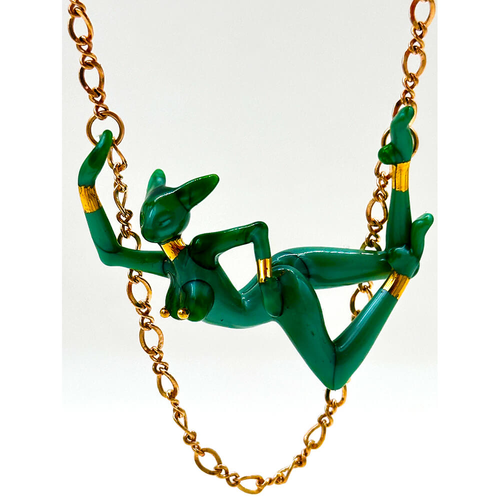 This Green cat is 4cm big and comes on a 17 long gold coloured chain.Â